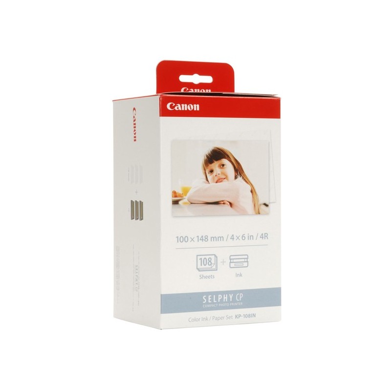 Kit di Stampa per Canon Selphy composto da 108 fogli in formato 10x15 con retro in formato Cartolina. Il kit include anche la cartuccia di inchiostro per stampare 108 fotografie. Progettato per CP-10, 100, 200, 220, 300, 330; SELPHY CP330, CP400, CP500, CP510, CP520, CP530, CP600, CP710, CP720, CP730, CP740, CP750, CP760, CP770, CP780, CP790, CP800