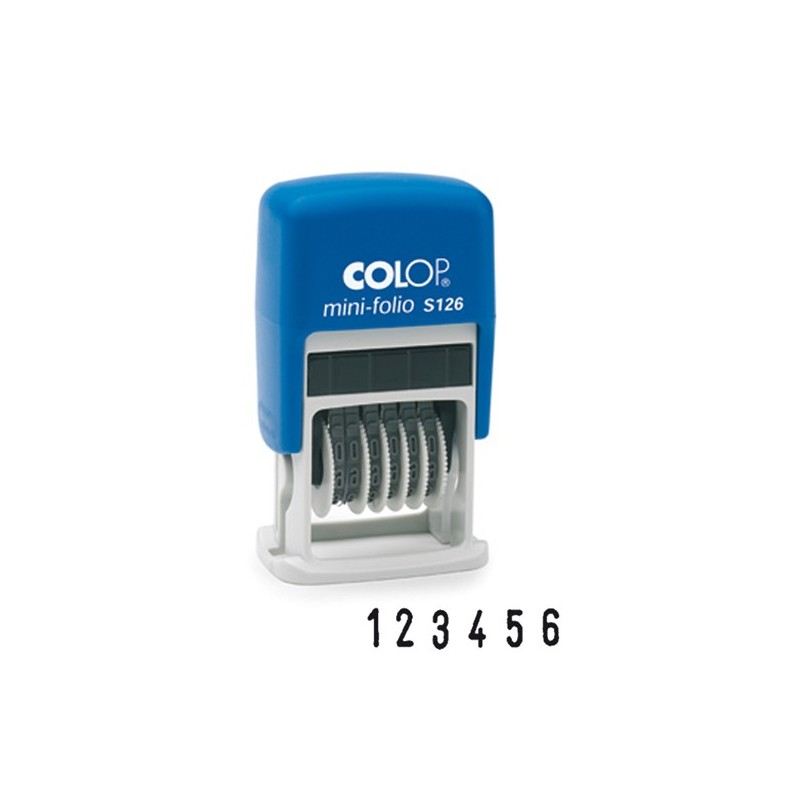 Timbro mini numeratore S126 autoinchiostrante 6 colonne con caratteri alti 3.8mm. Fusto in ABS. Monta tampone E/10.