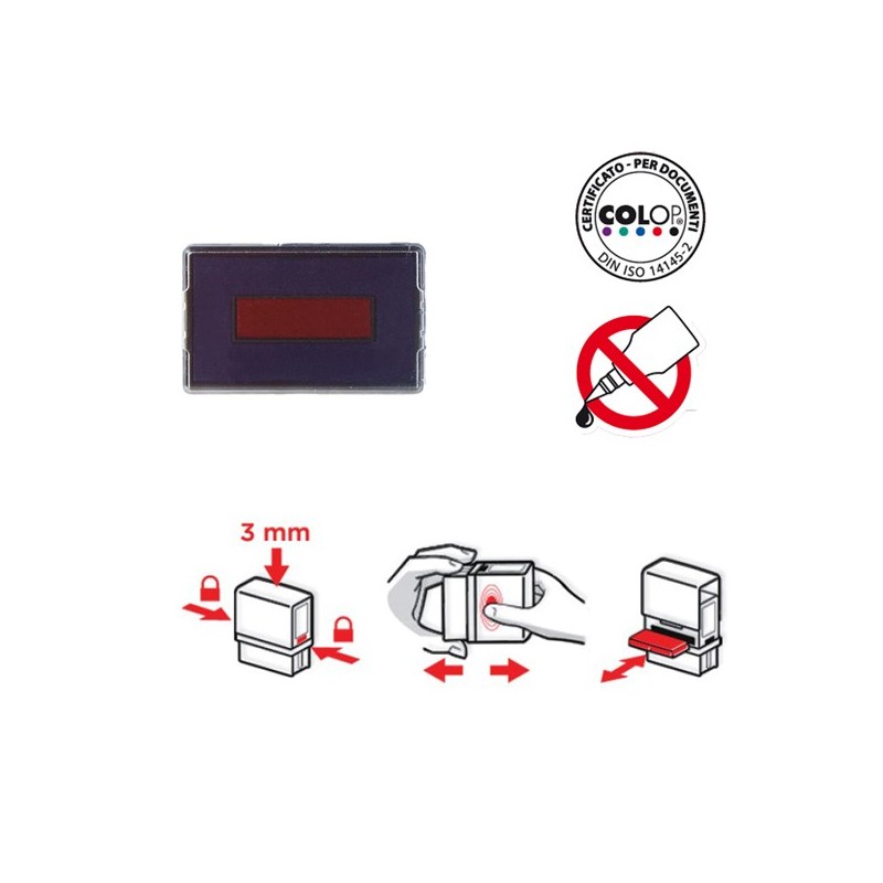 Cuscinetto inchiostrato di ricambio per timbri Colop, facile da sostituire grazie al sistema pop-out/snap-in. Una volta esaurito il cuscinetto deve essere sostituito, non Þ idoneo ad essere reichiostrato. Confezione da 5 pezzi.