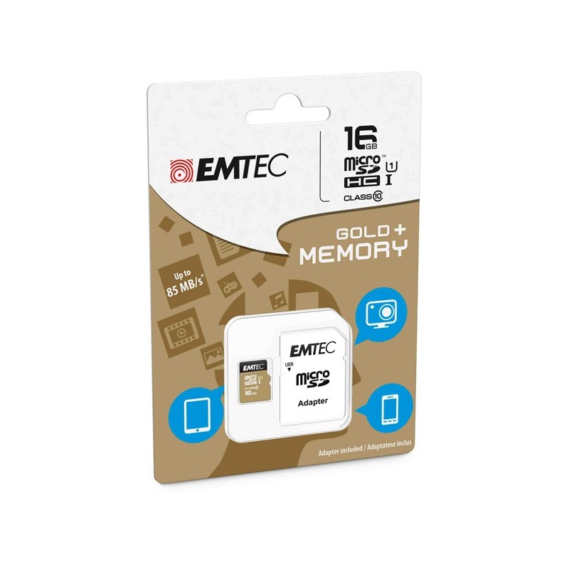 MICRO SDHC EMTEC 16GB CLASS 10 GOLD PLUS CON ADATTATORE