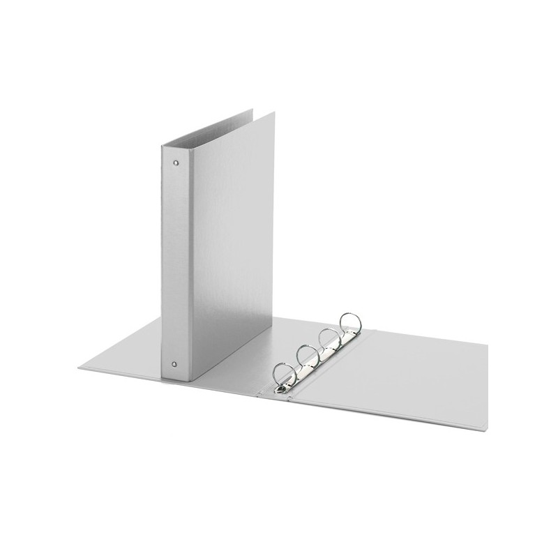 Raccoglitore realizzato in polipropilene con anima di cartone. Texture goffrata "Europa" per chi ama l'eleganza. Elevata resistenza per un uso quotidiano molto intenso a casa e in ufficio. Meccanismo a 4 anelli tondi (diametro 30 mm). Formato utile 22x30 cm. Formato esterno 27x32 cm. Colore grigio. Made in Italy.