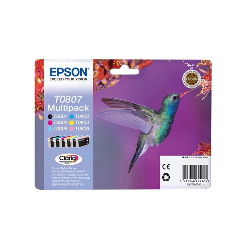 Multipack T080 6 col. Nero,ciano,magenta,giallo,ciano chiaro,magenta chiaro blister C/RF