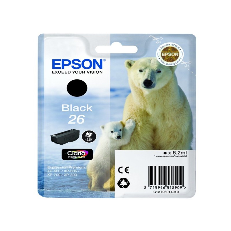 Cartuccia nero Epson claria premium serie 26/ORSO POLARE in blister RS