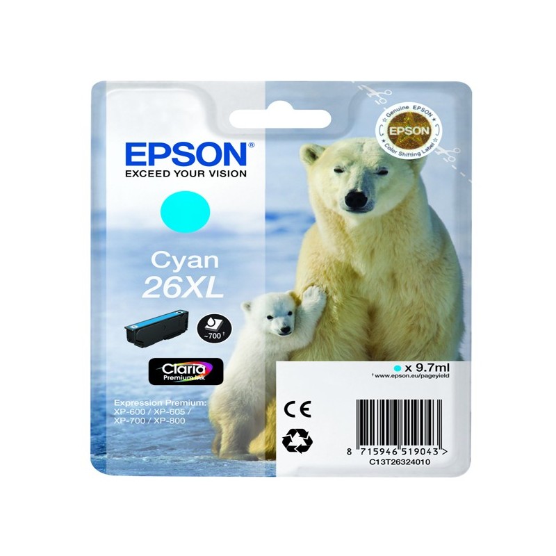 Cartuccia ciano Epson claria premium,serie 26XL/ORSO POLARE, in blister