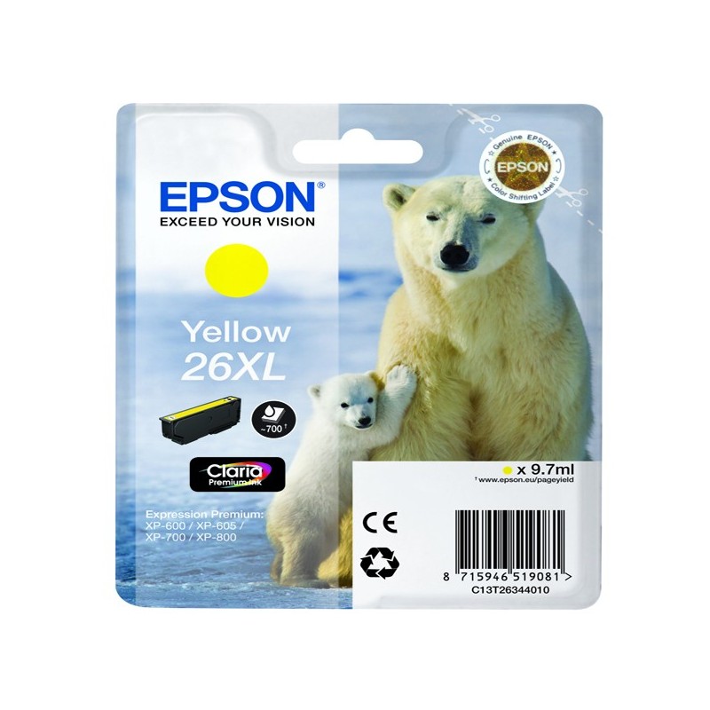 Cartuccia giallo Epson claria premium serie 26XL/ORSO POLARE, IN BLISTER