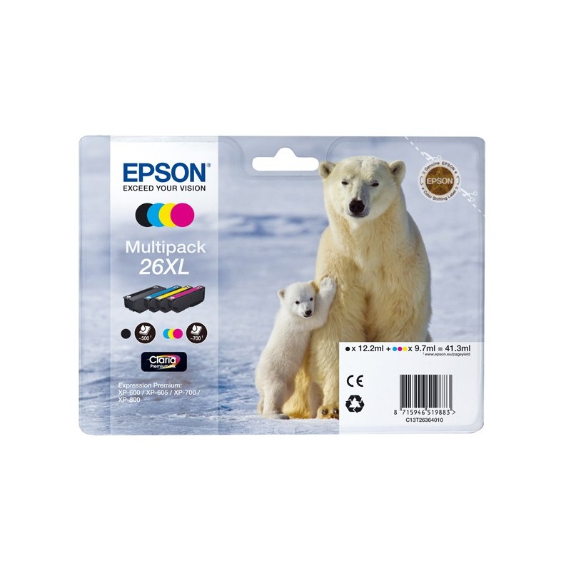 Multipack 26XL N.4 cartucce serie 26XL/ORSO POLARE nero,ciano,magenta,giallo