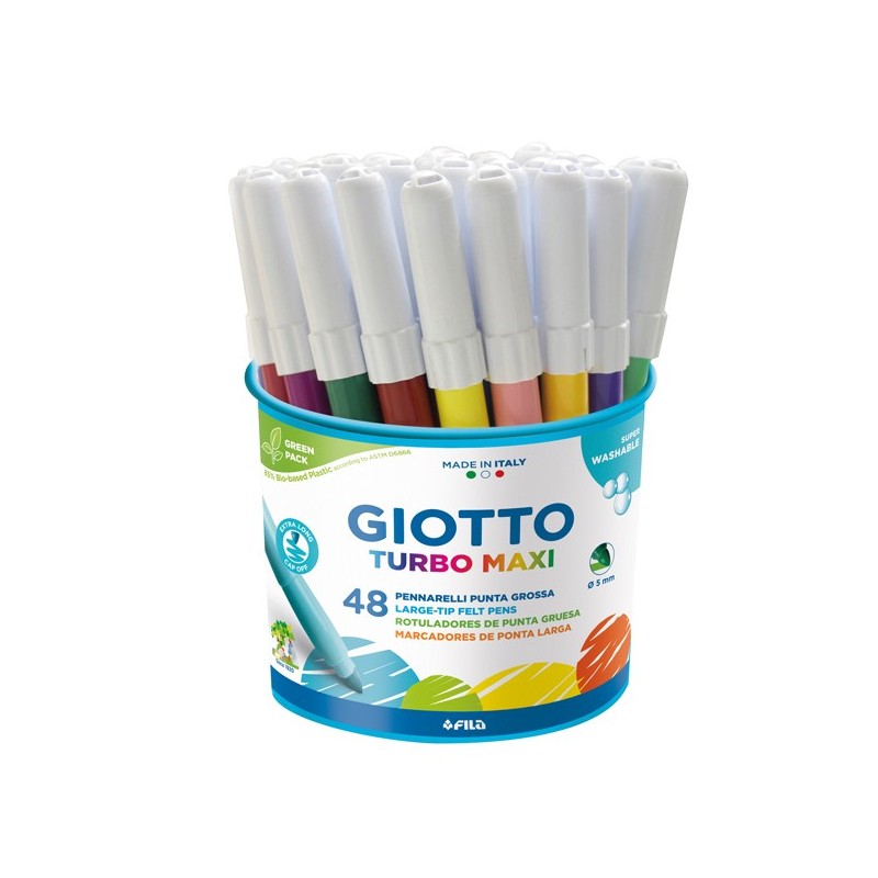 Secchiello da 48 pennarelli formato maxi (assortimento di 12 colori - 4 pz per colore)
