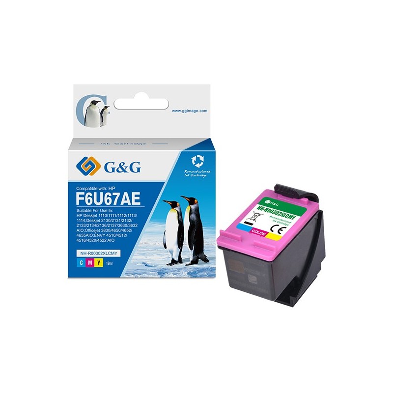 Cartuccia ink rigenerata Colore G&G per HP Deskjet 1110/1111/1112/1113/1114;Deskjet 2130/2131/2132/2133/2134/2136/2137/3630/3632 AIO;Officejet 3830/4650/4652/4655AIO;ENVY 4510/4512/4516/4520/4522 AIO