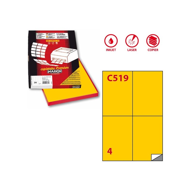 Scatola da 100 fogli di etichette in carta adesiva permanente in formato 21x29,7cm adatti per fotocopiatrici, stampanti laser, inkjet.