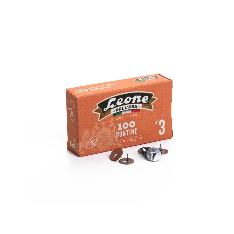 Scatola da 100 puntine ad una punta in acciaio lucido.