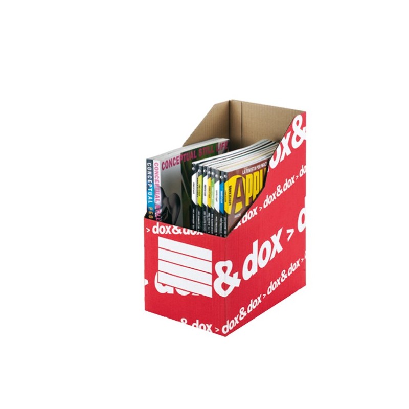 PRATICO CONTENITORE PER RIVISTE, CATALOGHI, FASCICOLI ANCHE VOLUMINOSI GRAZIE ALLA CAPIENZA RADDOPPIATA RISPETTO AI PORTARIVISTE CLASSICI. FORO DI PRESA. SPAZIO PER LA PERSONALIZZAZIONE SU ENTRAMBI I LATI DEL DORSO. F.TO EST.17,5X35X26CM; F.TO INT. 17X35X25CM