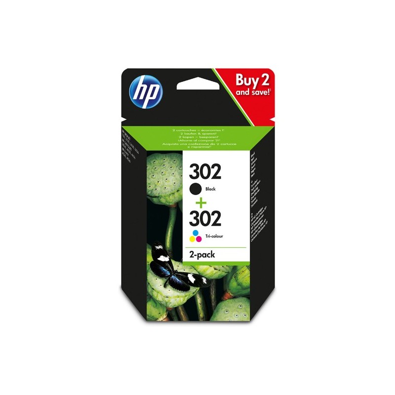 Confezione da 2 cartucce d'inchiostro nero/tricromia originali HP 302