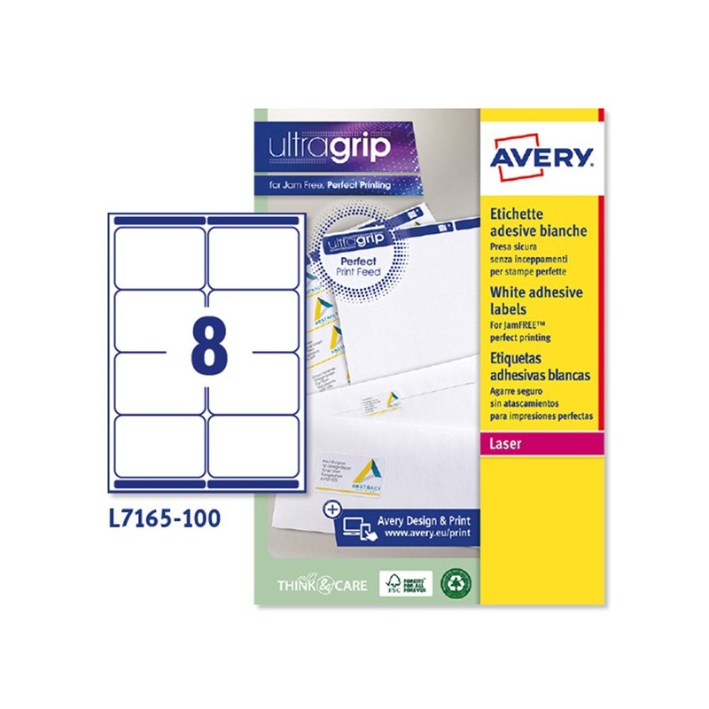 Scatola da 100fogli in formato A4 di carta bianca adesiva permanente. Ogni foglio contiene 8 etichette rettangolari con angoli tondi nel formato 99,1x67,7mm. Tecnologia QuickPEEL™. Stampa inkjet, laser e laser colore.