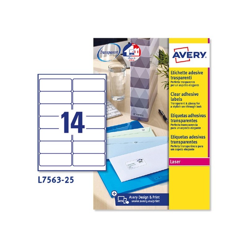 Scatola da 25 fogli in formato A4 in poliestere trasparente adesivo. Etichette rettangolari per stampanti laser e laser a colori. Tecnologia QuickPEEL™