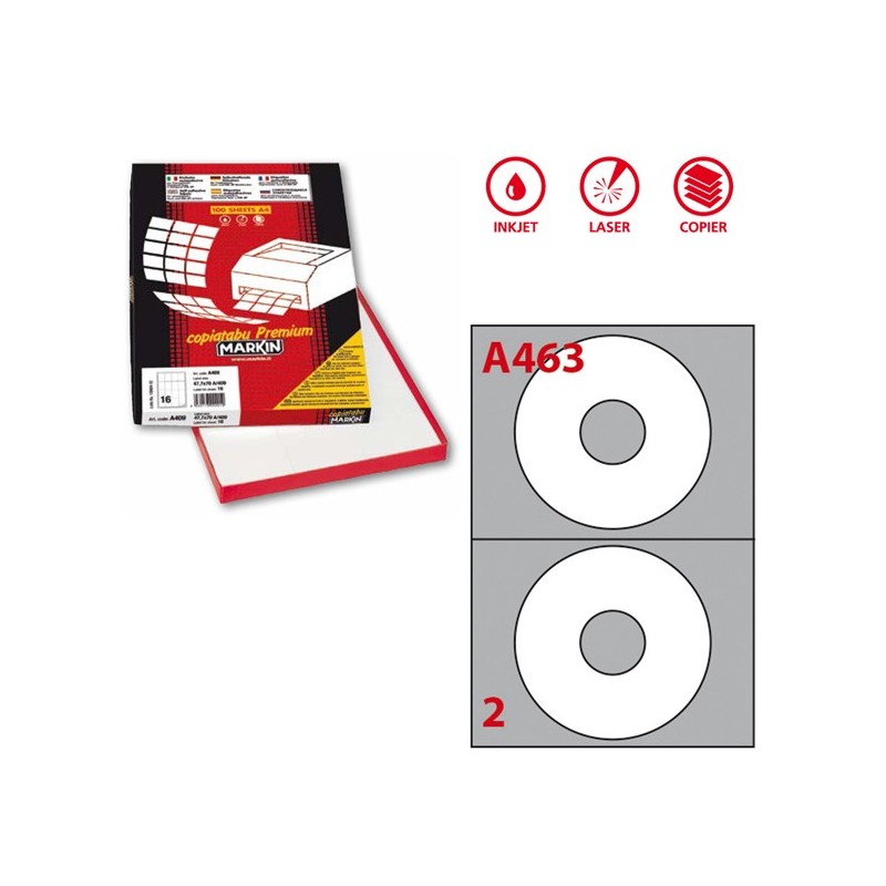 Scatola da 100fg da 21x29,7cm di etichette adesiva permanente bianche. Adatte per stampanti inkjet, laser e copy.