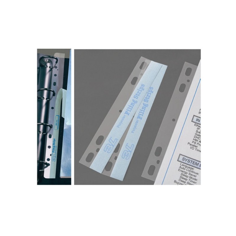 Bandelle adesive a perforazione universale che permettono di archiviare documenti o folder a più pagine che non si desidera perforare. Formato 29,5cm.