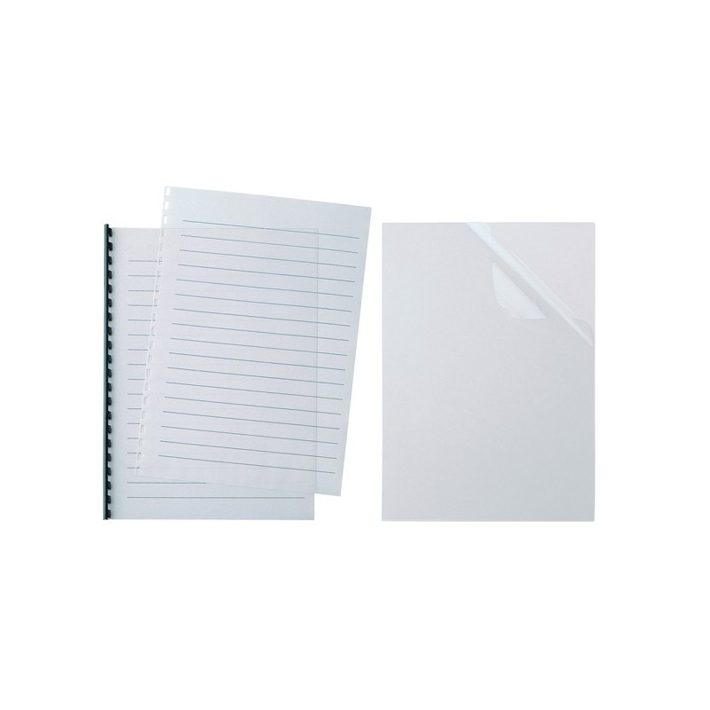 Confezione da 100 copertine trasparenti in PVC rigido adatte alle rilegature con spirale o dorsino rilegafogli. Resistenti allo strappo, garantiscono un'ottima protezione dei documenti. Formato 210x297mm.