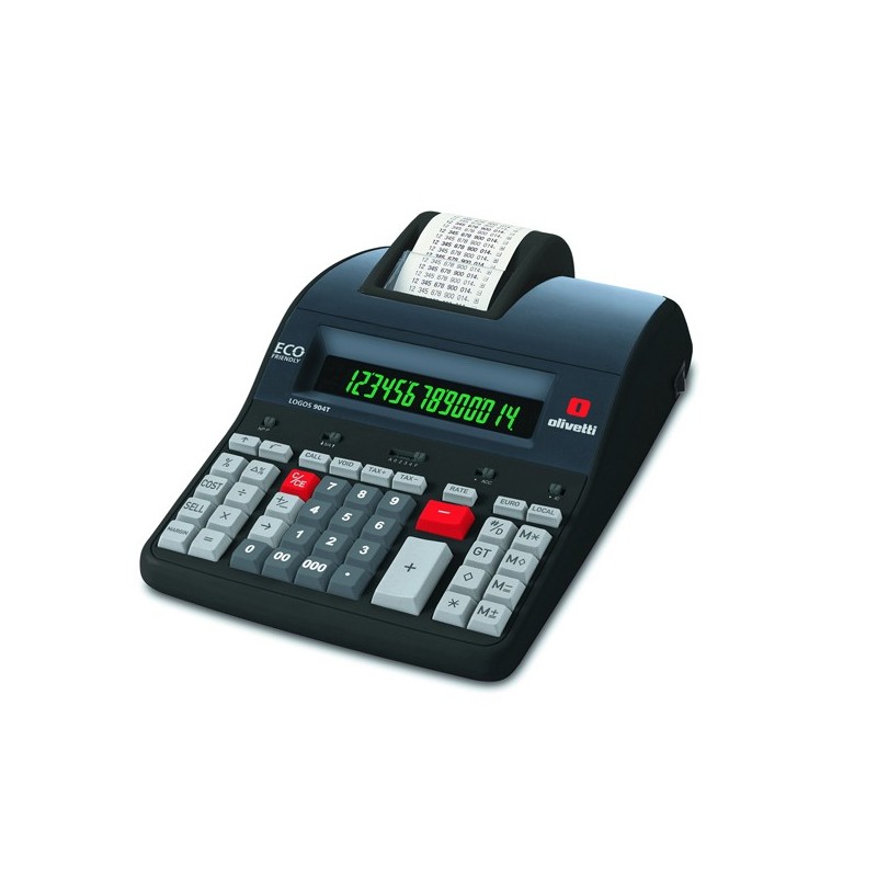 "Calcolatrice scrivente e professionale logos 904t "" display lcd a 14 cifre retroilluminato "" funzione saving "" stampante termica alfanumerica "" prodotta con plastica riciclata e riciclabile "