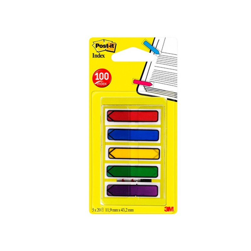 Segnapagina in formato mini frecce, autoadesivi, scrivibili e riposizionabili. Disponibili in confezione da 5 colori: rosso, blu, giallo, verde e viola. Formato 12x43.2mm.