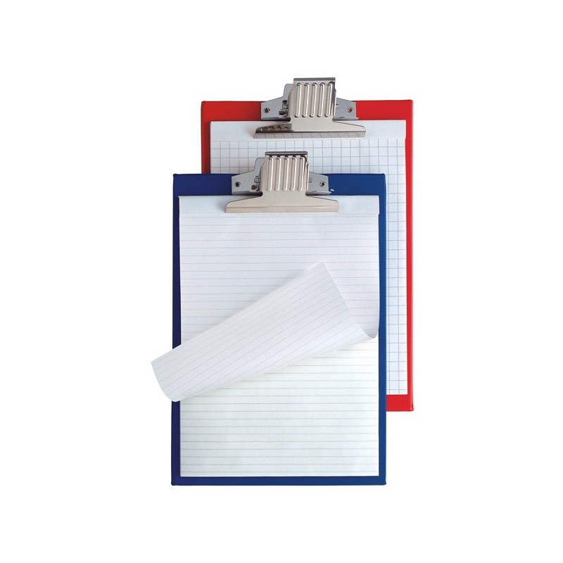 Portablocco in Colpan (cartone rivestito in PVC) con molla in acciaio e foro per affissione. Modello ML molla alta capacità fino a 300fg. Colore: blu. Formato interno 21x29,7cm.