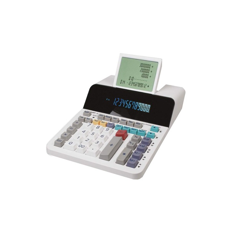 Calcolatrice unica che coniuga la funzionalità di una calcolatrice stampante ed una da tavolo. La combinazione di un display a 12 cifre (richiudibile) con uno LCD a 5 righe permette di by-passare la necessità di stampare il calcolo e con la funzione Check&Correct (fino a 300 passi indietro) è in grado non solo di visualizzare, ma anche di modificare a posteriori i calcoli. Data l’assenza di meccanismi per la stampa, questa calcolatrice è assolutamente silenziosa ed ecologica. Tra le varie funzioni si segnalano: spese /vendita/rendita, +TAX/-TAX, arrotondamento per eccesso o per difetto, impostazione decimale, Grand Total, doppio zero e memoria a 4 tasti. Alimentazione solo con l’adattatore in dotazione.