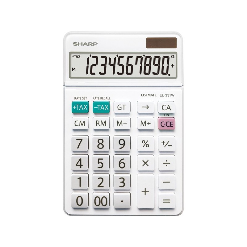Calcolatrice da tavolo con ampio display LCD a 10 cifre inclinabile, che permette una perfetta leggibilità ed evita fastidiosi riflessi di luce. Design elegante e colore bianco con effetto specchiato. Ottima varietà di funzioni, tra cui calcolo dell'imposta +\-, funzione Gran Totale, tasto di correzione ultima cifra, tasto 00, calcolo percentuale, cambio segno e spegnimento automatico. Alimentazione: solare e batteria (1xCR2032). Dimensioni: 110x170x12,5 mm. Peso: 147 g.