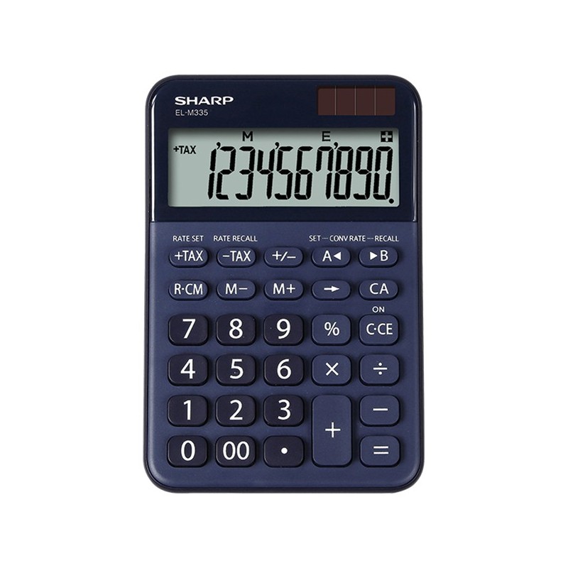 ELM335: 10 cifre, doppia alimentazione, grande display inclinato, conversione di valute, blister, blu