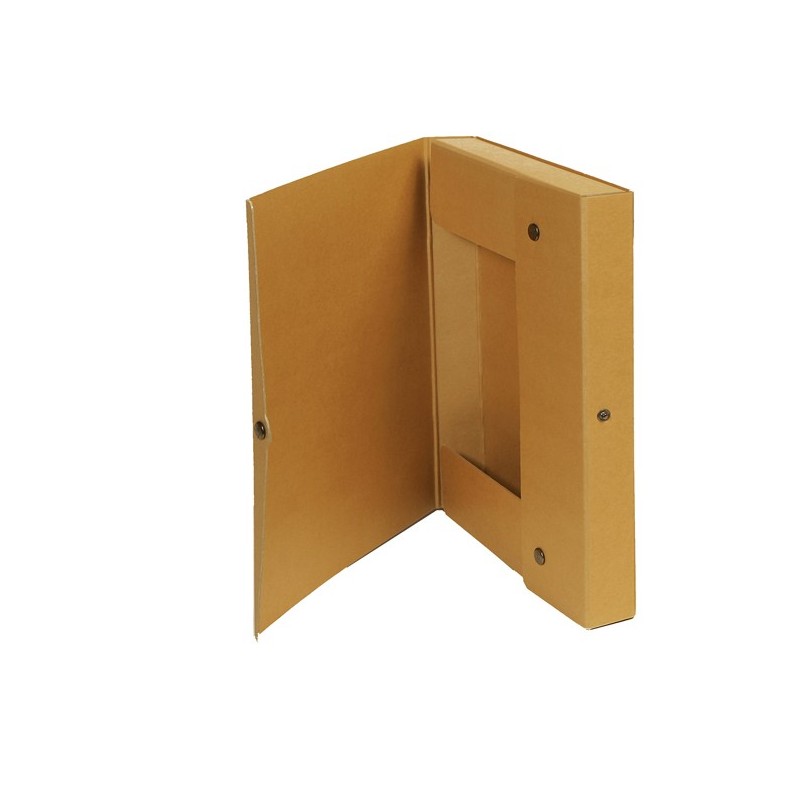 Scatola progetto STARLINE in robusto cartone ecologico riciclatodi colore avana da 1,3mm. Chiusura interna ed esterna con bottoni a pressione. Completa di etchetta adesiva per la personalizzazione del contenuto. Formato utile 25x35cm.