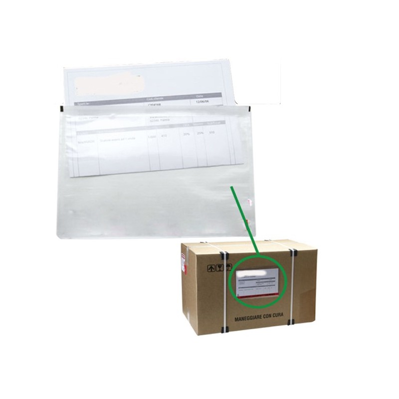 Buste adesive portadocumenti STARLINE in polipropilene neutre senza stampa. Adesivo Hot Melt. Apertura sul lato lungo.