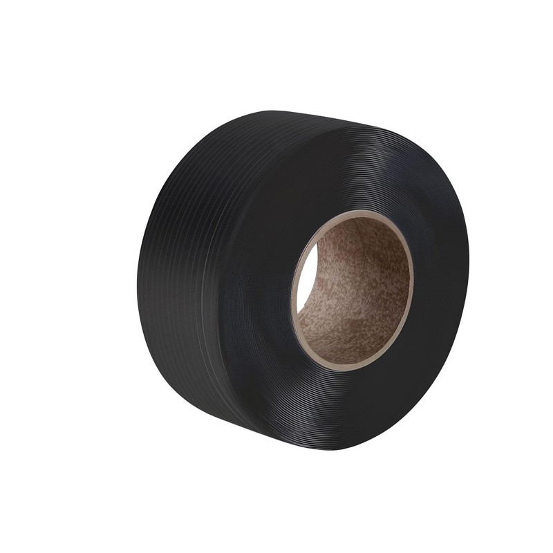 Reggia per utilizzo su apparecchi tendireggia manuali, atossica non biodegradabile, additivi esclusi, totalmente riciclabile. In polipropilene colore nero ad impronta goffrata alta resistenza. Altezza 12mm, spessore 0,5mm. Diametro interno della bobina: 60mm. In bobina da 1000mt.