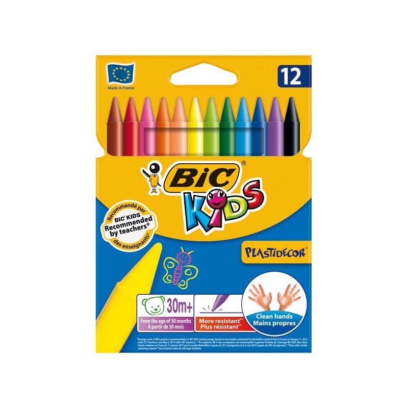 Pastelli in plastica particolarmente adatti ai bambini piu' piccoli perche' sono ultra-resistenti ed extra-puliti sulle mani e sui tessuti. La forma triangolare consente una facile impugnatura.