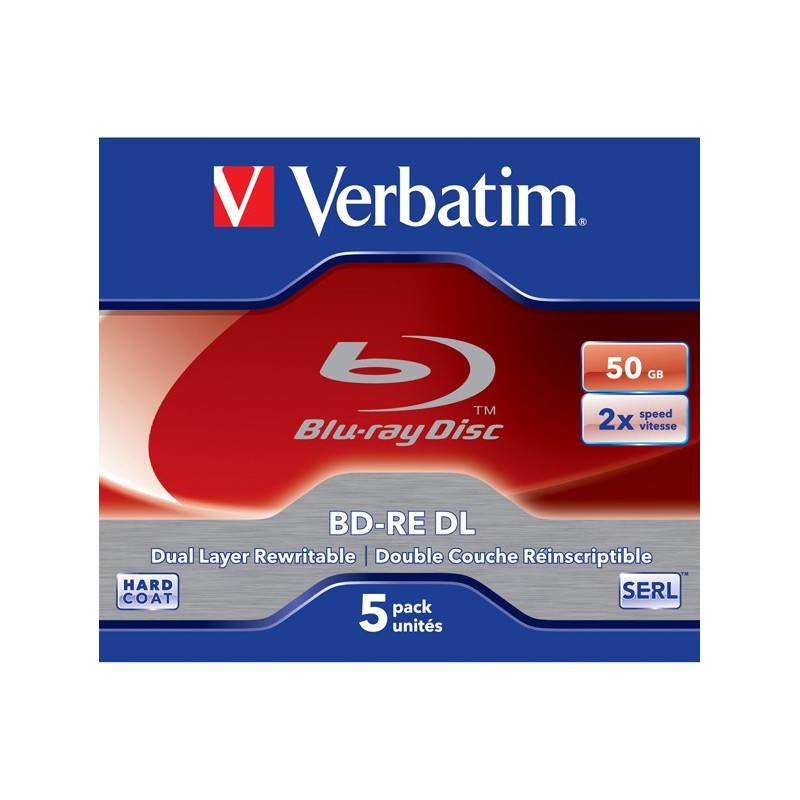SCATOLA 5 BLU RAY BD-RE DL 50GB 2X RiSCRIVIBILE JEWEL CASE