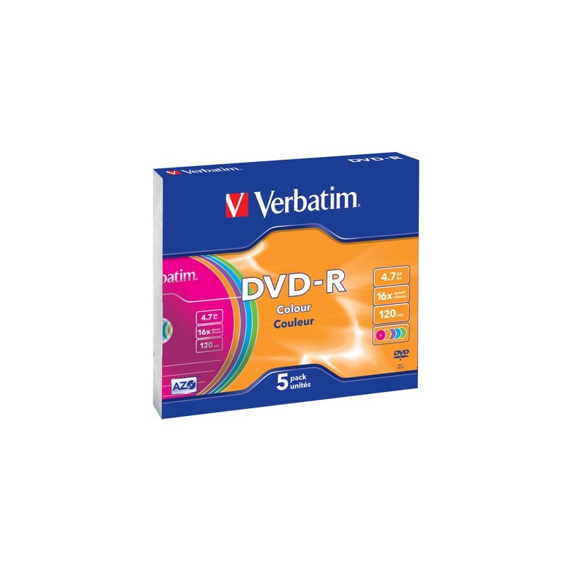 SCATOLA 5 DVD-R SLIM CASE 16X 4.7GB 120MIN. SERIGRAFATO COLORATO
