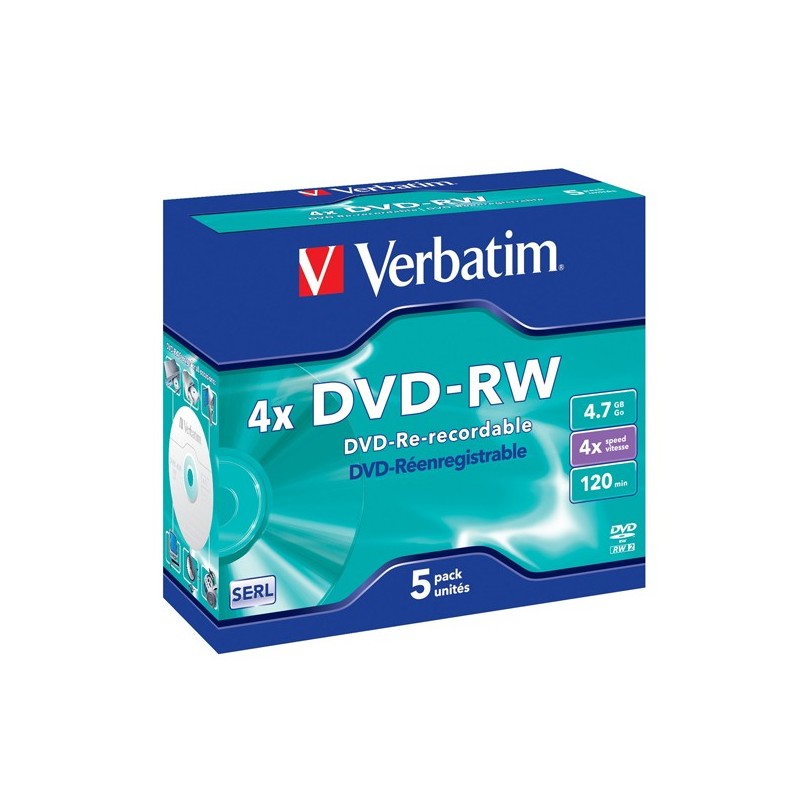 SCATOLA 5 DVD-RW JEWEL CASE 4X 4.7GB 120MIN. SERIGRAFATO