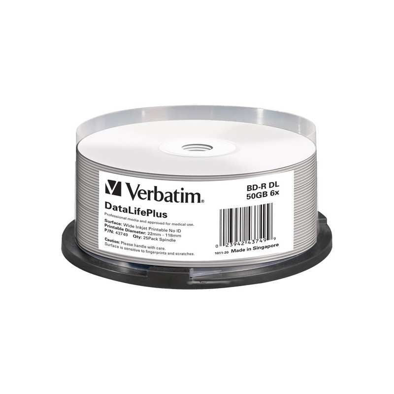 SCATOLA 25 BLU-RAY BD-R 50GB 6X STAMPABILE IN SPINDLE