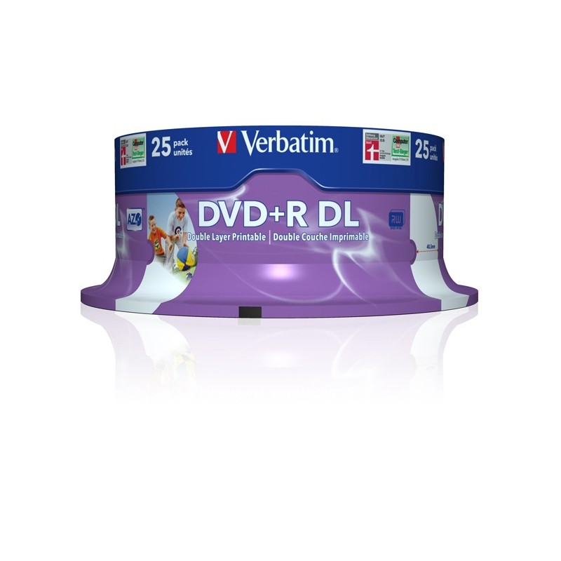 SCATOLA 25 DVD+R DUAL LAYER 8X 8.5GB 240MIN. SERIGRAFATO SPINDLE