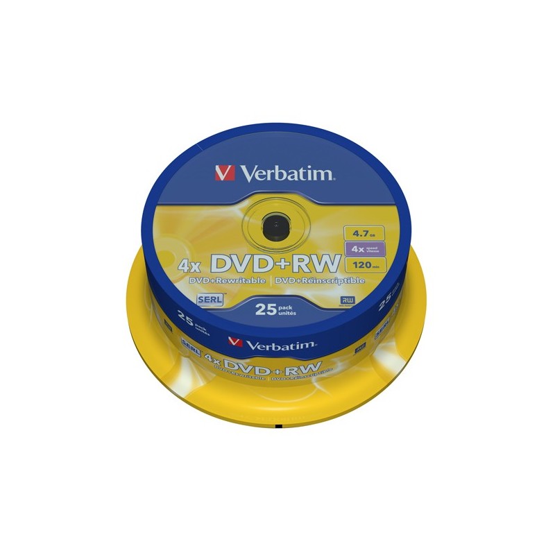 SCATOLA 25 DVD+RW SPINDLE 4X 4.7GB 120MIN. SERIGRAFATO