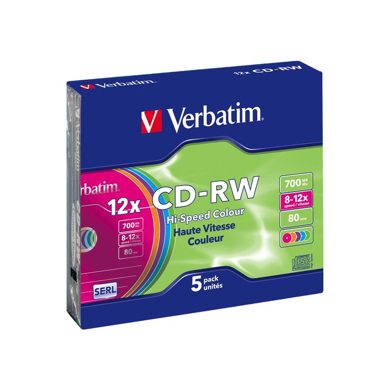 SCATOLA 5 CD-RW DATALIFEPLUS SLIM CASE 8X-10X 700MB SERIGRAFATO COLORATO_RISCRIVIBILE