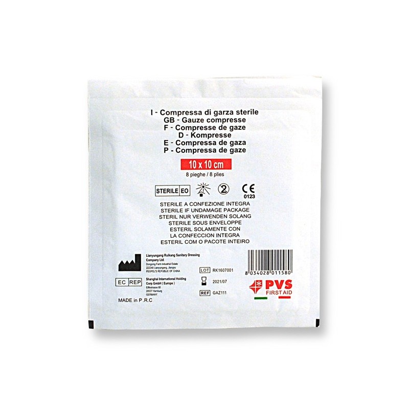 Garza compressa sterile in cotone bianco 10x10cm a 8 pieghe. REPERTORIO DISPOSITIVI MEDICI Ministero della Salute nr. 1584196 CND M0201010101