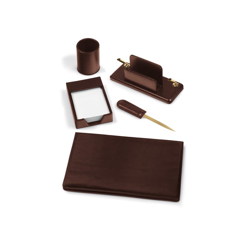 Set scrittoio in similpelle morbido composto da 5 pezzi: apribusta, portapenne, portafoglietti, portastilofori e sottomano doppio cm.35x50.