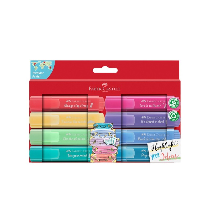 Evidenziatore ideale per tutte le carte comuni e speciali. Inchiostro a base d'acqua, larghezze di tratto: 1, 2 e 5mm. Fusto e cappuccio realizzati con plastica riciclata al 100%. Prodotto certificato a impatto zero.
