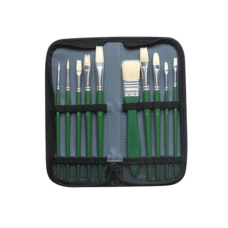 Set 10 pennelli assortiti, per olio. Astuccio zip perfetto per i viaggi, aiuta a conservare meglio i pennelli.