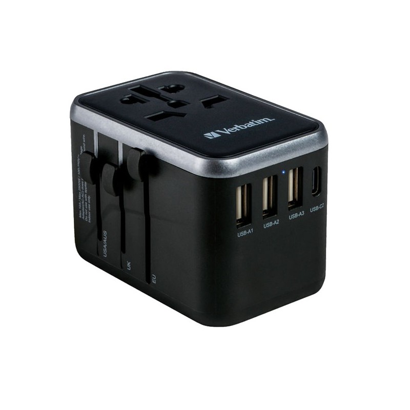 L’Adattatore da Viaggio Universale Verbatim può essere utilizzato in oltre 180 Paesi: portalo ovunque con te e non rimarrai mai senza alimentazione. Questa multi-spina world-to-world ti consentirà di collegarti a qualsiasi rete elettrica locale in tutto il mondo e di ricaricare i tuoi dispositivi energivori, come i laptop e le batterie delle telecamere/macchine fotografiche. Le porte USB-A e USB-C presenti nella parte inferiore consentono di ricaricare tutti i dispositivi USB, tra cui smartphone, altoparlanti Bluetooth, tablet, power bank e Kindle. Con una porta USB-C ad alta potenza che supporta 61W Power Delivery (PD) e Quick Charge (QC) 3.0, offre una ricarica superveloce.