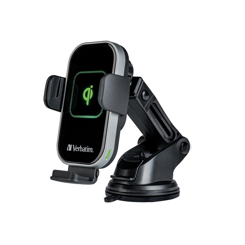 Caricabatterie wireless per auto Porta telefono a ricarica rapida di Verbatim che utilizza la tecnologia di ricarica wireless Qi ad alta velocita per fornire una ricarica sicura e veloce per il tuo Android o iPhone. Il supporto di ricarica di alta qualità consente di effettuare chiamate in vivavoce e di vedere comodamente le mappe GPS mentre si ricarica. Non appena si appoggia il telefono sul supporto, questo lo riconosce e chiude automaticamente i bracci laterali mantenendolo saldamente in posizione. Con una potenza di ricarica massima di 15W, può caricare anche attraverso custodie del telefono con uno spessore massimo di 4 mm.