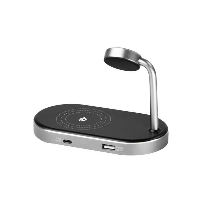 La stazione di ricarica 3-in-1 di Verbatim consente di caricare tutti i tuoi dispositivi contemporaneamente. Ricarica in modalità wireless l'Apple Watch, l'iPhone (8 o successivo) o un altro dispositivo abilitato alla ricarica wireless con certificazione Qi, e un terzo dispositivo via cavo tramite la porta Quick Charge 3.0 USB-A.