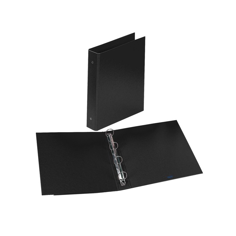 Raccoglitore realizzato in polipropilene con anima di cartone. Texture goffrata "Europa" per chi ama l'eleganza. Elevata resistenza per un uso quotidiano molto intenso a casa e in ufficio. Meccanismo a 4 anelli tondi (diametro 50 mm). Formato utile 22x30 cm. Formato esterno 29,5x32 cm. Colore nero. Made in Italy