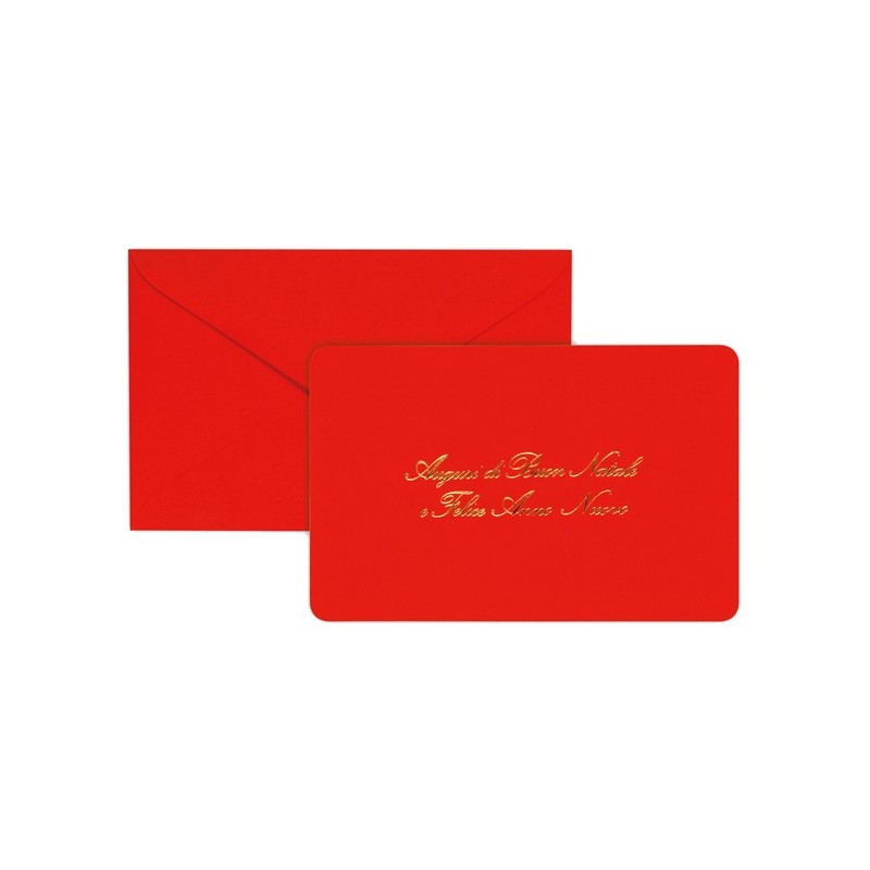 Biglietto semplice 9x14cm in carta uso mano. Completo di busta in tinta. Stampa oro a caldo.