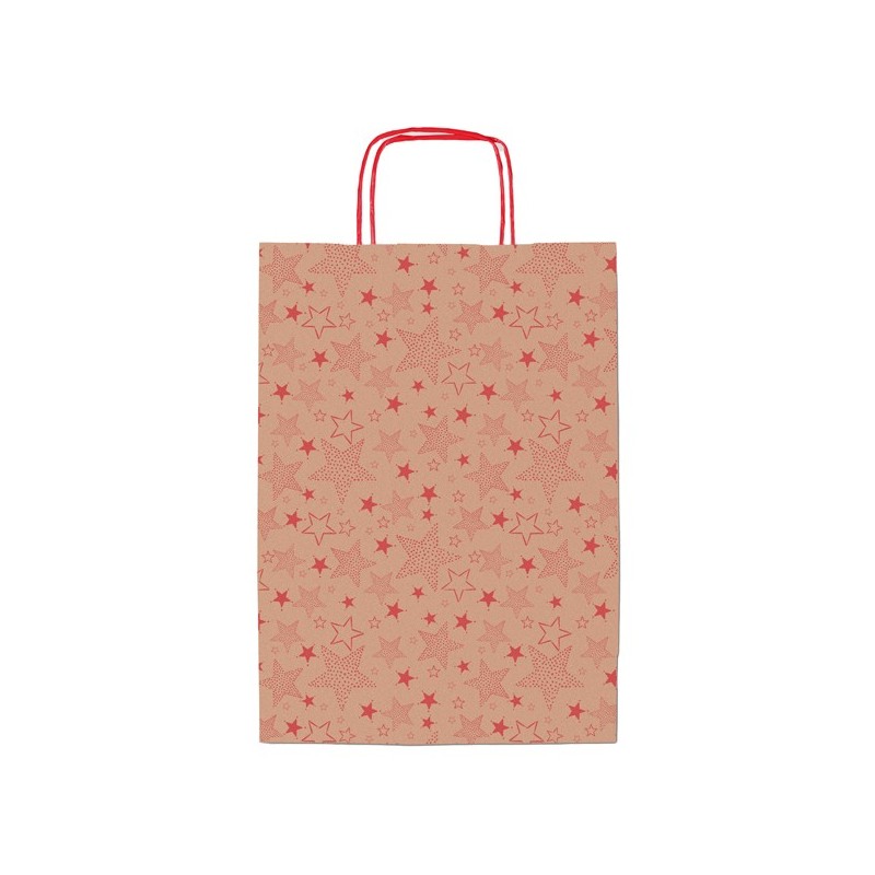 Shopper in carta kraft avana con stampa a colori e manici in carta ritorta.