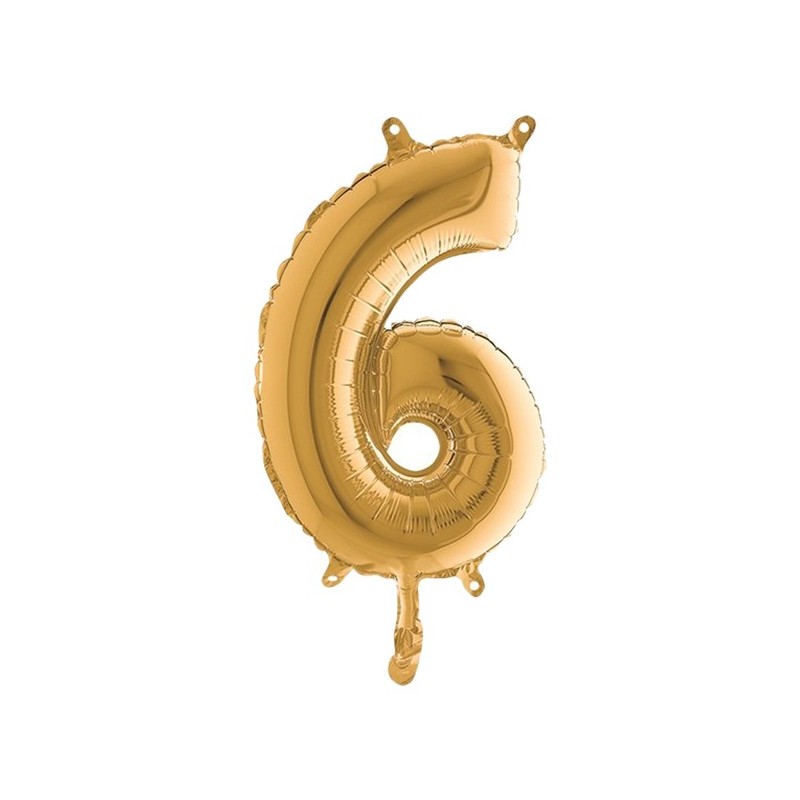 Numero h. 36cm, realizzato in mylar foil metalizzato gonfiabile ad aria attraverso la bocchetta alla base. Cannuccia inclusa nella confezione.