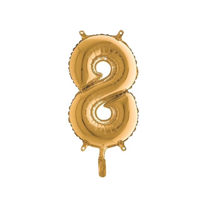 Numero h. 36cm, realizzato in mylar foil metalizzato gonfiabile ad aria attraverso la bocchetta alla base. Cannuccia inclusa nella confezione.